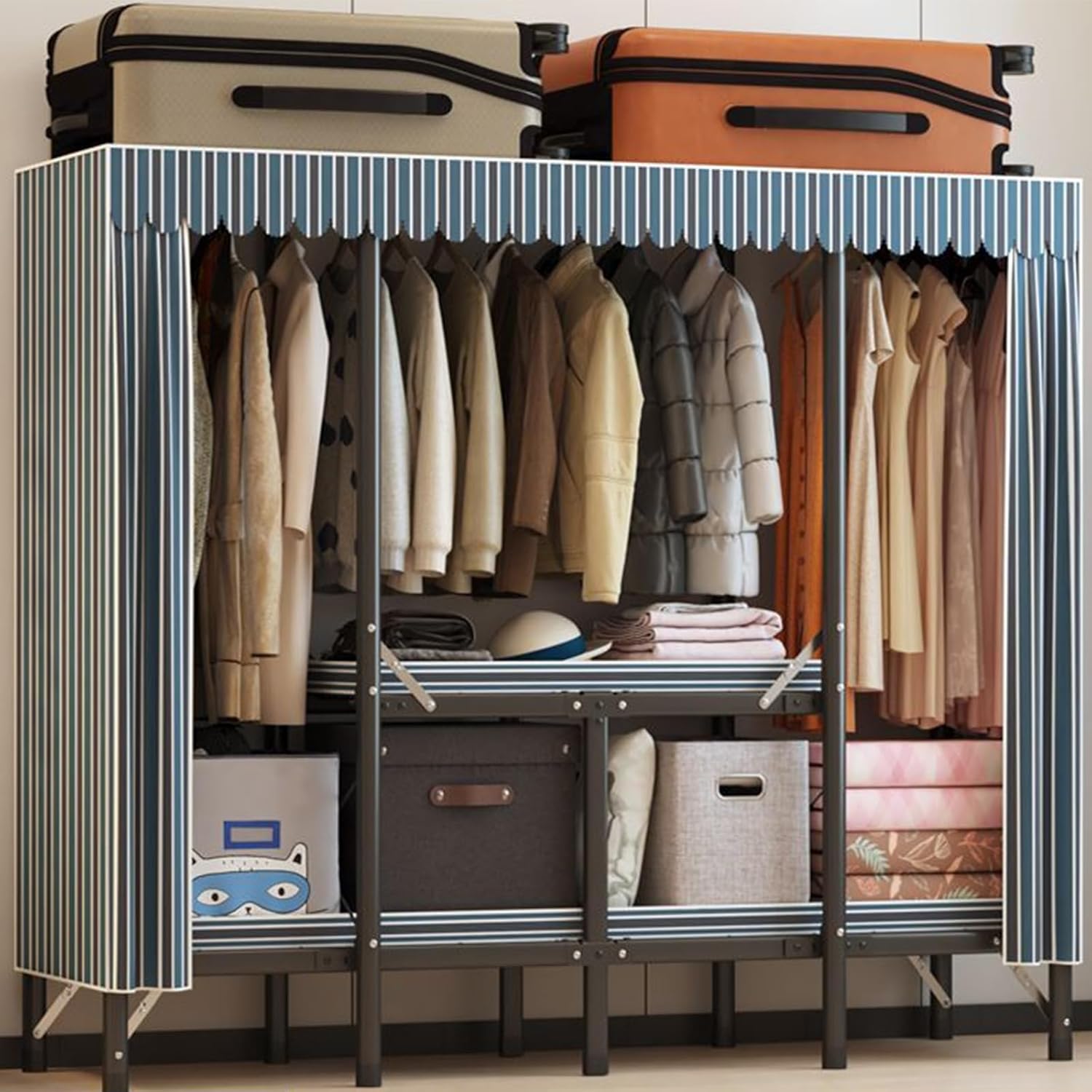 ♥【This is a flexible and detachable portable bedroom wardrobe, you can place them in the bedroom, living room, or even outdoor terrace as needed; you can create a temporary walk-in closet anywhere.♥【Specifications:- Name: Free installation folding wardrobe/portable wardrobe clothing organizer/space-saving wardrobe/walk-in folding wardrobe- Assembly: Assembled- Folding: Yes- Fabric material: thickened Oxford cloth- Material: thickened and thickened carbon steel pipe- Pipe diameter: 22mm- Load-bearing: more than 500kg- Overall size: 150x50x172cm- Opening and closing method: gauze style and zipper style- Very suitable for use in bedrooms, cloakrooms, children's rooms, dormitories, rental houses, etc.♥【The portable wardrobe creates spacious space for bedrooms, cloakrooms, clothing stores and laundry rooms, meeting your long-term and various storage needs, and keeping your home in good order.♥【Package Includes:1x Cloth Wardrobe1x Installation Accessories1x Manual♥【Warm Tips:1. Please note that the picture tone may be slightly different from the actual product due to lighting effects, monitor brightness/contrast settings, etc.2. This size information is for reference only, and 1-2 cm error is allowed due to manual measurement.3. If you have any questions about these wardrobes, please feel free to contact us, we have a professional team to answer your questions.