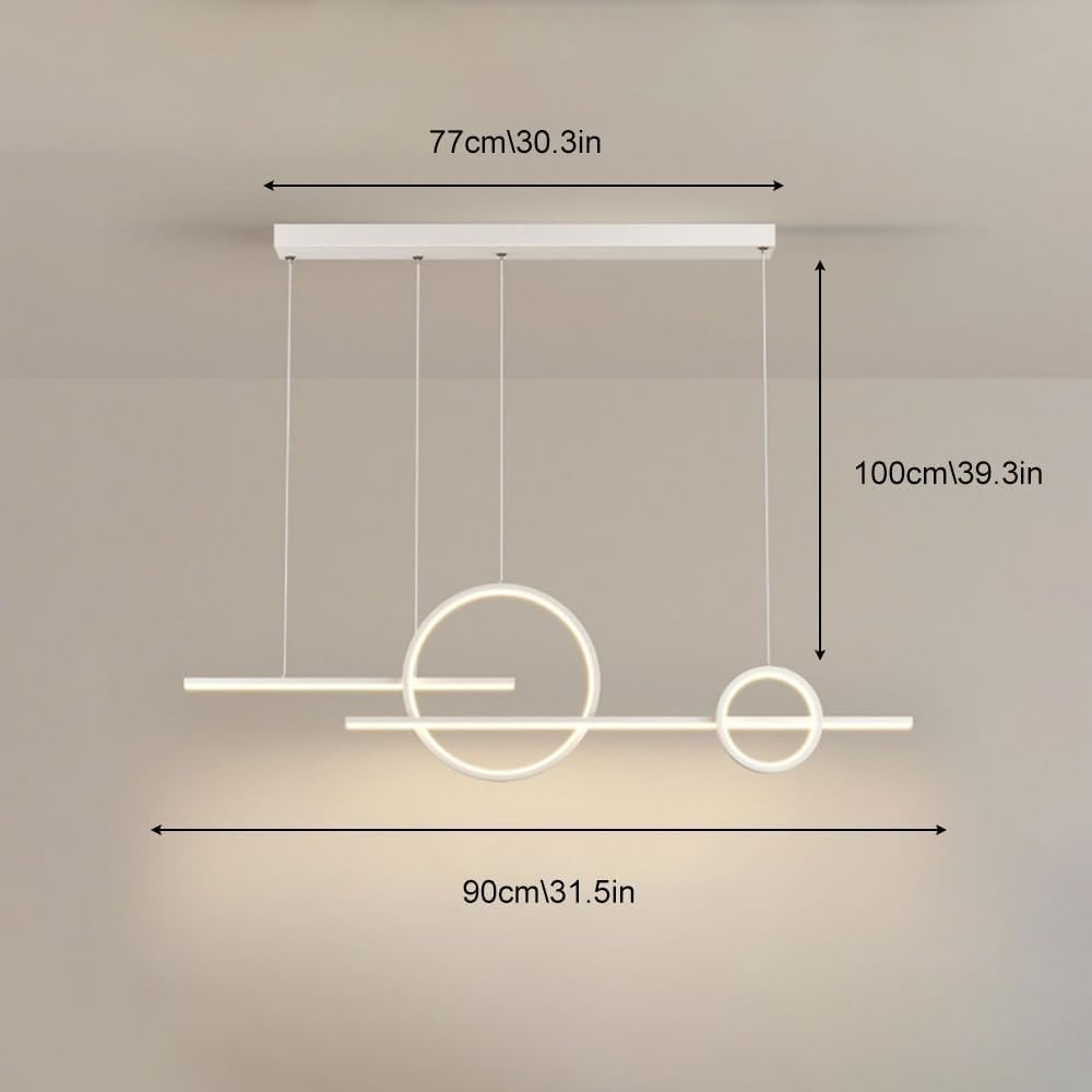 WINDALY Modern Led Strip, Linear Light with Remote, Circle Hangingp for Diniroom Kitchen Island/White/90Cm